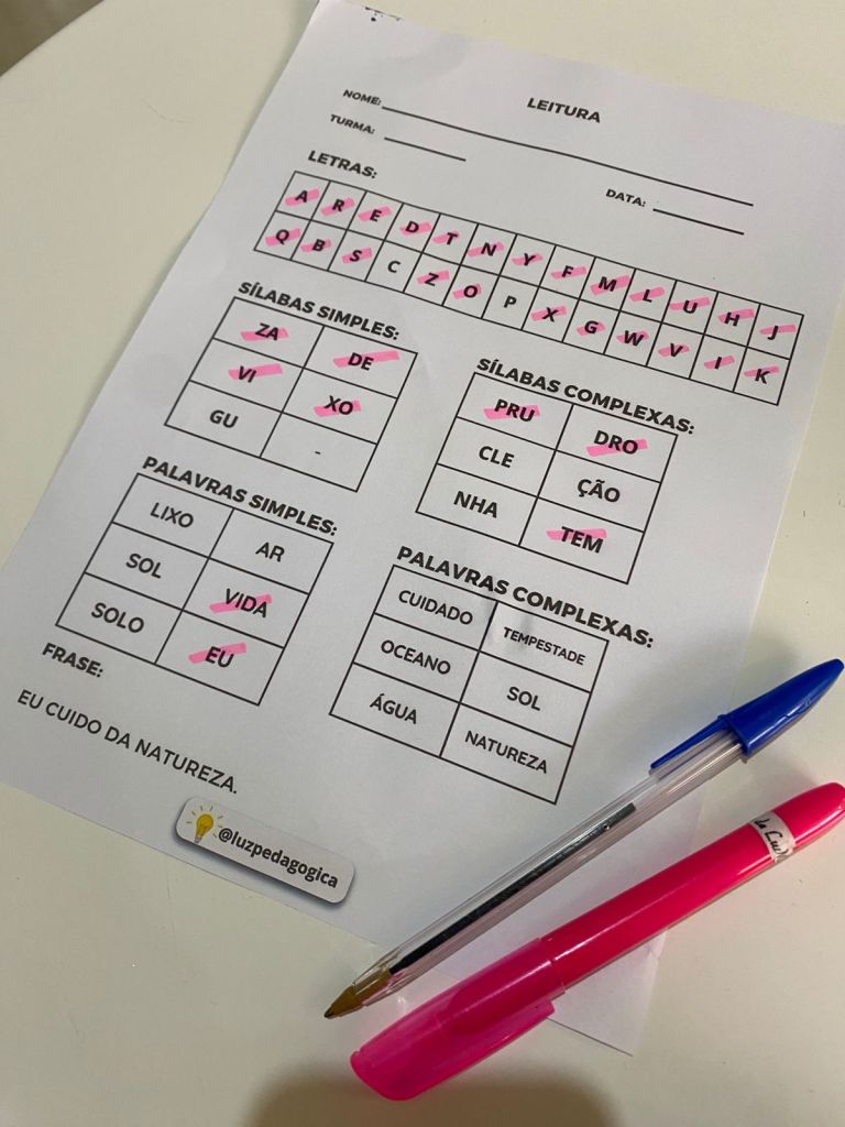 Ao finalizar a coleta/diagnóstico de leitura e escrita é momento de tabular os dados da turma. Na tabela acrescente o nome dos estudantes e assinale o nível de escrita e leitura em que eles estão. Desta forma, ao final, a professora consegue contabilizar quantos dos seus estudantes estão em cada nível e a partir desses dados, analisar e planejar estratégias de intervenção na alfabetização.